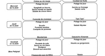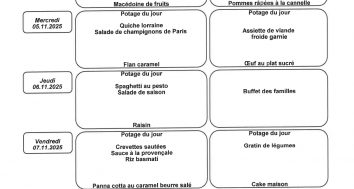 Le plan des menus hebdomadaire est affiché. Les goûts et intolérances alimentaires de chacun sont recensés et respectés.