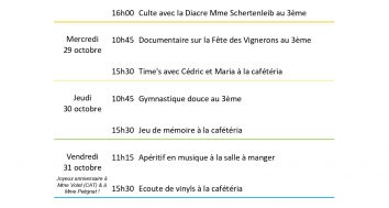Le programme des animations de la semaine se trouve sous les « Téléchargements ».