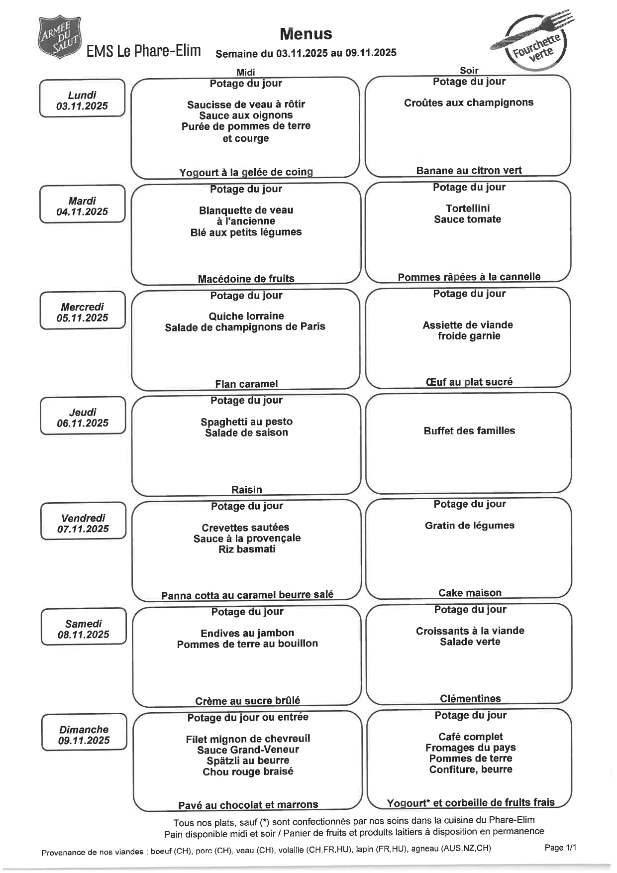 Les menus de la semaine se trouve sous les « Téléchargements »
