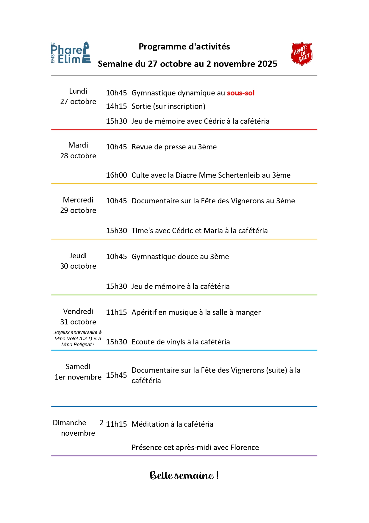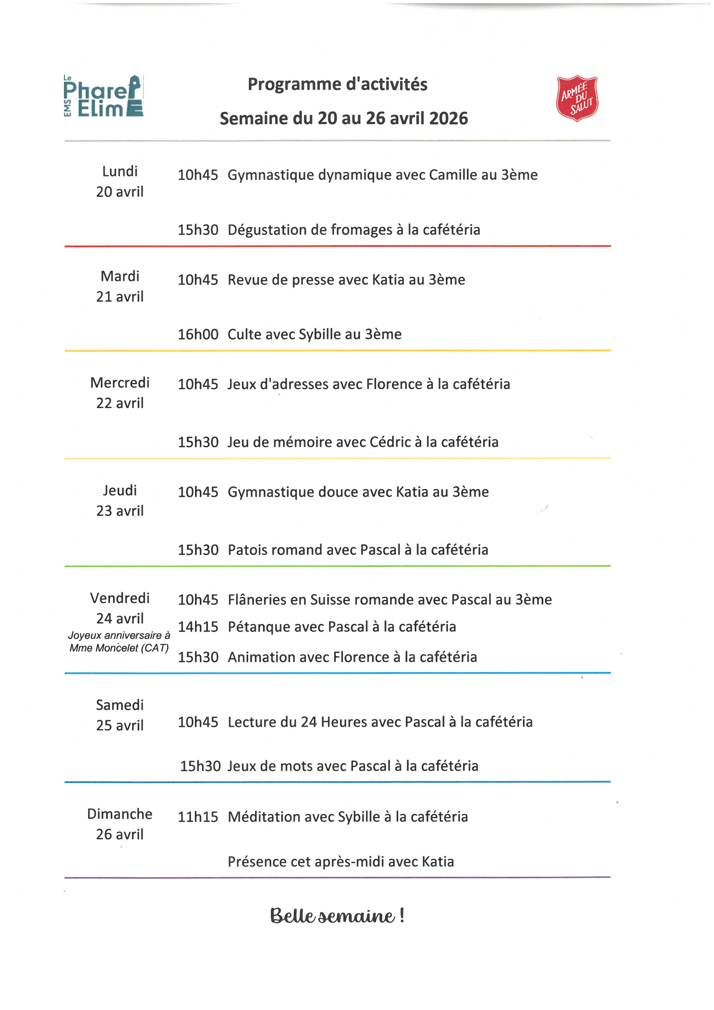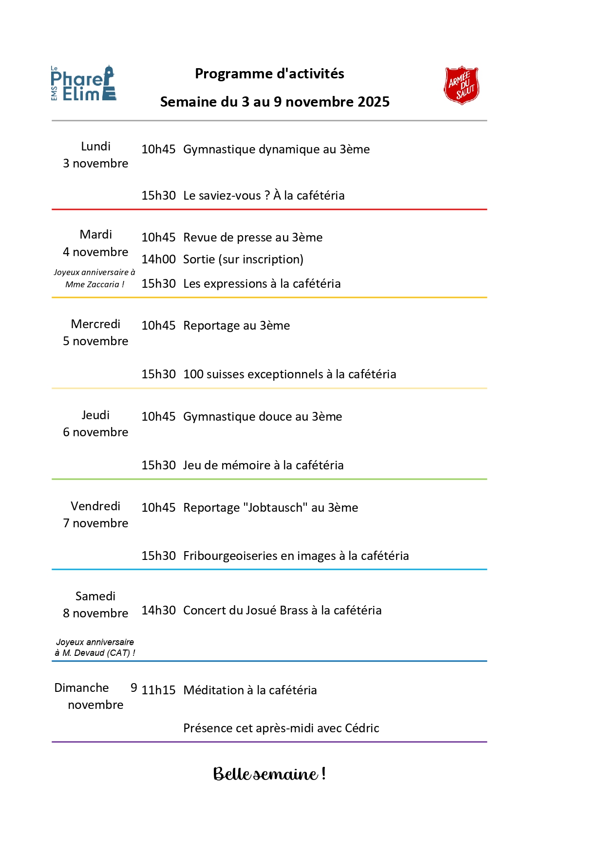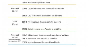Le programme des animations de la semaine se trouve sous les « Téléchargements ».